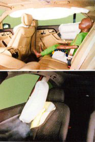 A be nem kapcsolt biztonsági öv légzsákos autóban kétszeresen is öl. Európában a tervezők alapvetően abból indulnak ki, hogy az ember bekapcsolta az övét, és ennek megfelelően választják meg a lufi méretét, alakját, a töltet erősségét és a gyújtás időpontját. K. József (??) tehát nem elég, hogy kifejel a szélvédőn, de előtte még közvetlen közelről meg is szemlélheti, ahogy a pirotechnikai töltet háromszázzal az arcába robban.