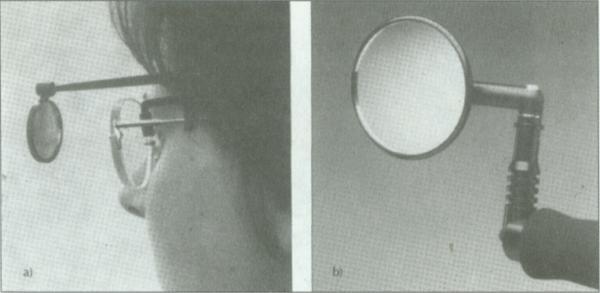 E) Küllőprizmával, mely borostyánsárga és fényvisszaverős.