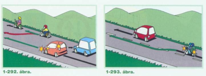 egymás mellett nem haladhat! Kivétel a kétkerekű motorkerékpár, a segédmotoros