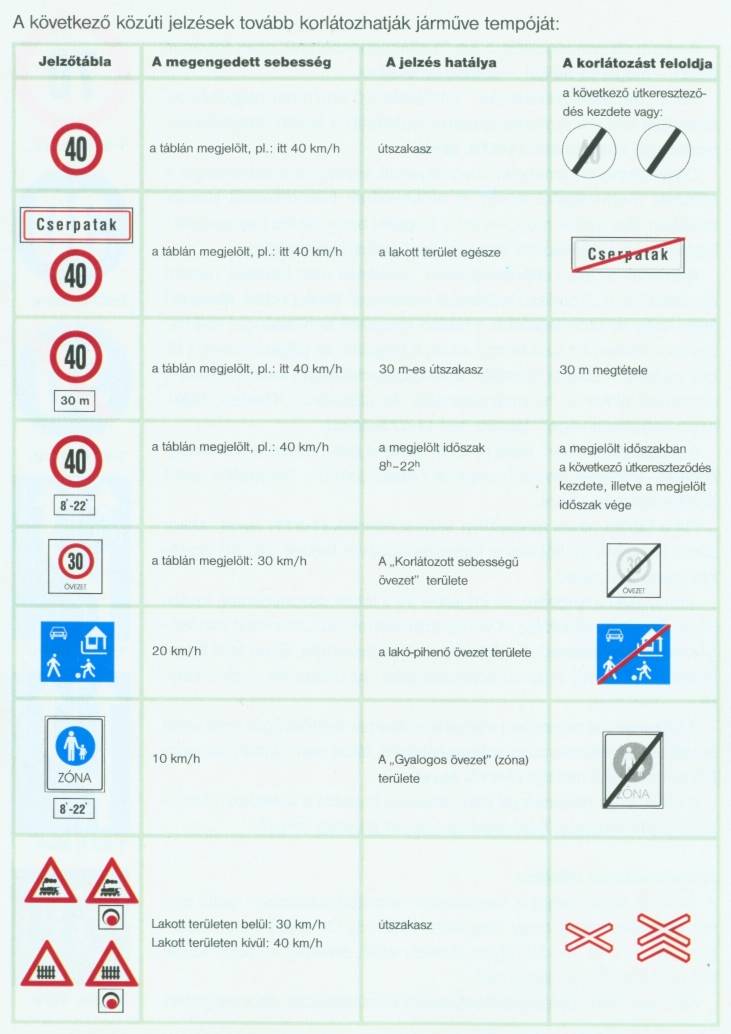 Ha a "Sebességkorlátozás" jelzőtábla 50 km/h-nál nagyobb sebességet