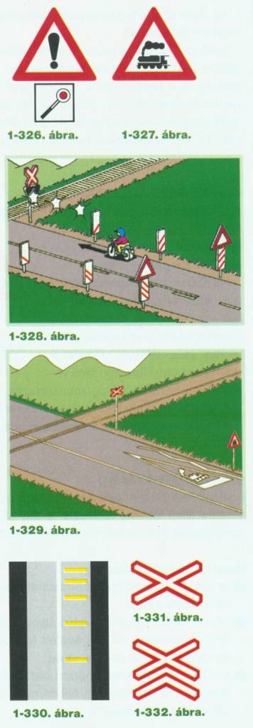 A vasúti átjáróhoz közeledve először a megfelelő háromszög alakú veszélyt jelző táblával találkozik, amely előre jelzi, hogy számíthat-e az áthaladás biztonságát növelő berendezések valamelyikére.