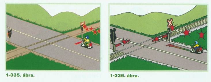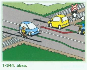 Így pl. tilos a vasúti átjáróban és közvetlenül az átjáró előtt előzni (1-341.