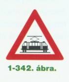 utat keresztező villamospályára a "Villamos" jelzőtábla (1-342. ábra)