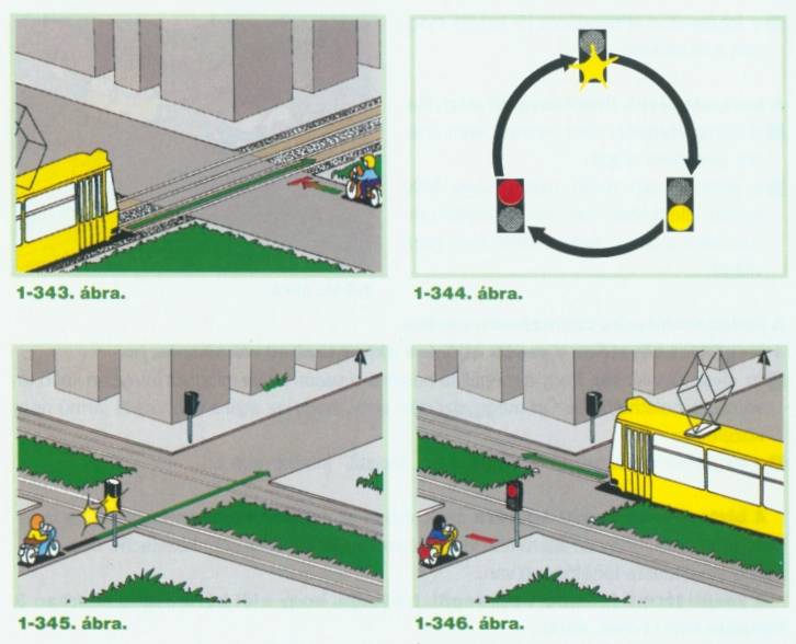 A lámpa piros fényjelzésének ideje alatt (1-346. ábra) a villamospályára ráhajtani