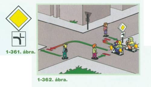 Ha kanyarodó főútvonalon halad, ezt táblával jelzik (1-361. ábra). Itt a vastag