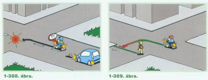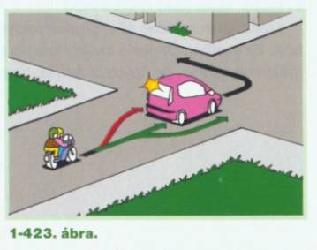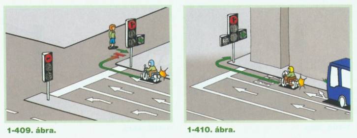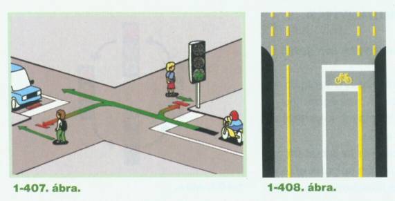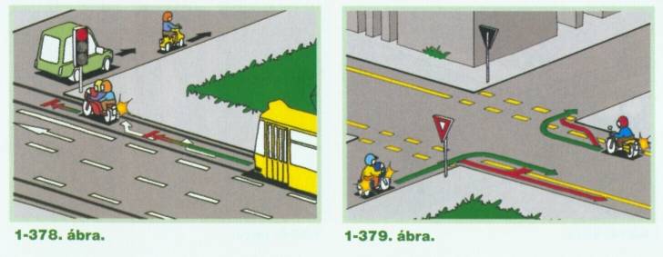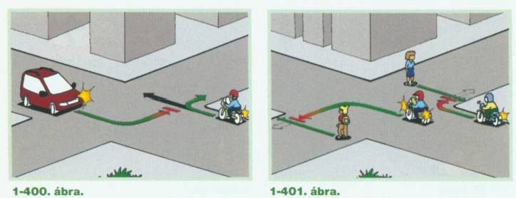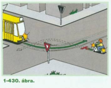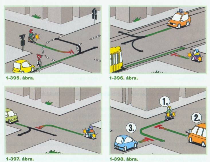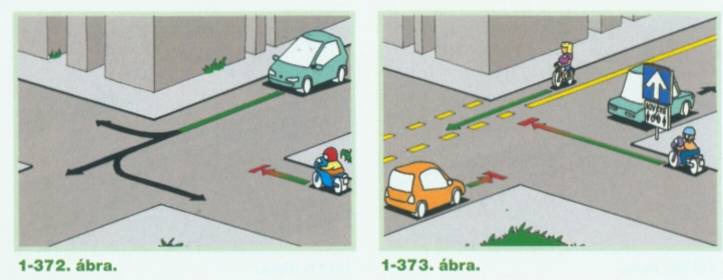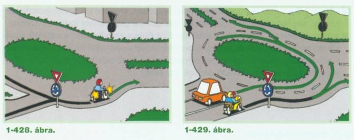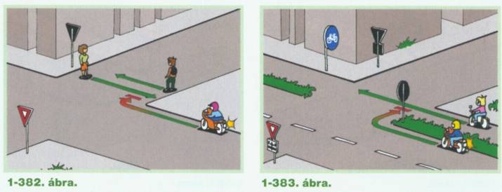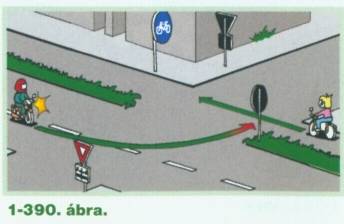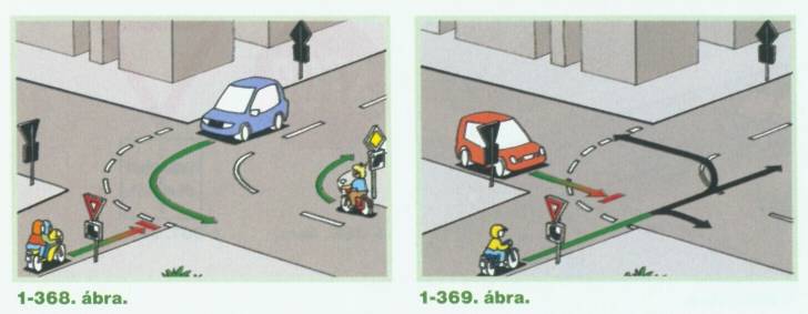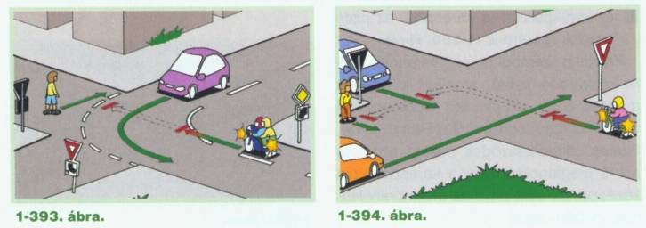 ábra), sőt, az egyenesen haladó kerékpárosoknak elsőbbséget kell adnia. Bár