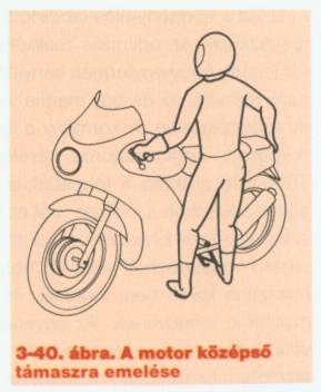 a motorkerékpár felállítását középső, majd oldaltámaszra.