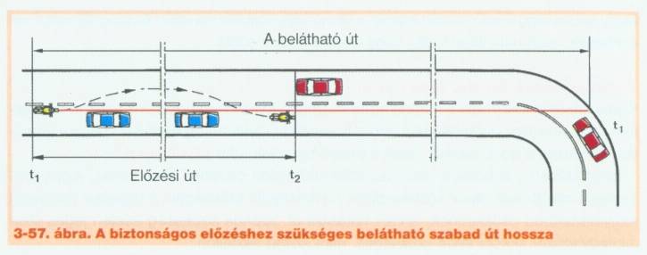 ismét a távolsági fényt, ha az előzendő jármű elejével egy vonalban vagyunk.